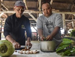 Peternak meracik jamu untuk diberikan kepada hewan ternak di peternakan di Desa Ciharalang, Kabupaten Ciamis,…